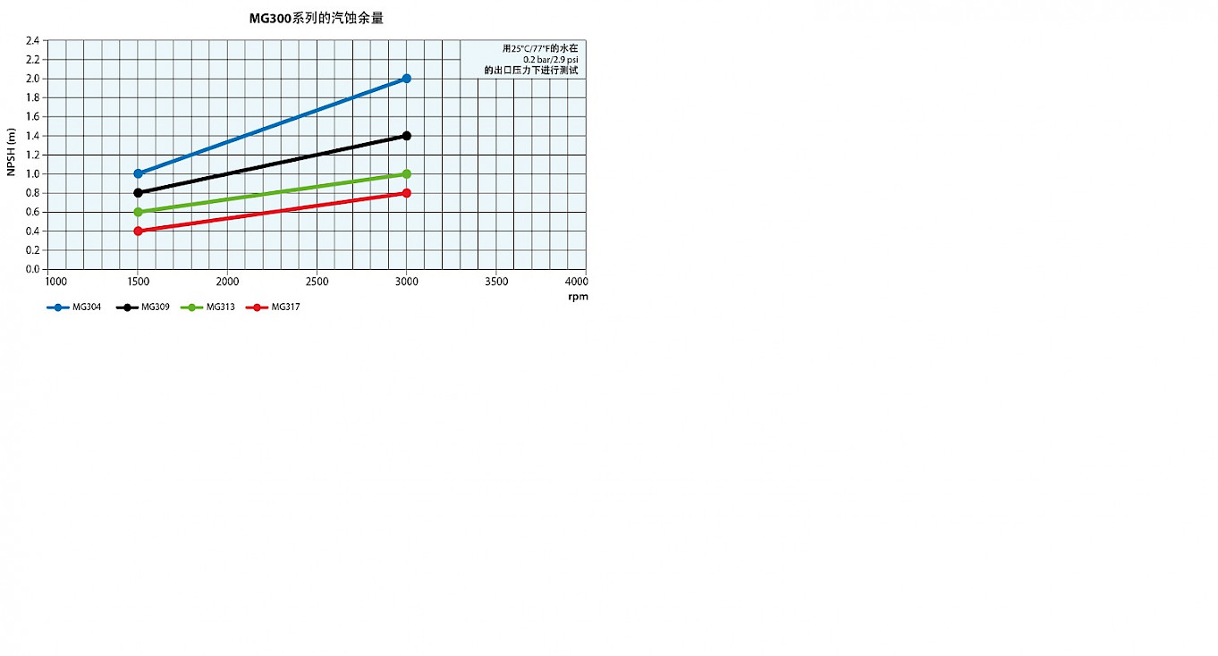 NPSH值取决于泵的流量和速度。典型值如图(*)所示。